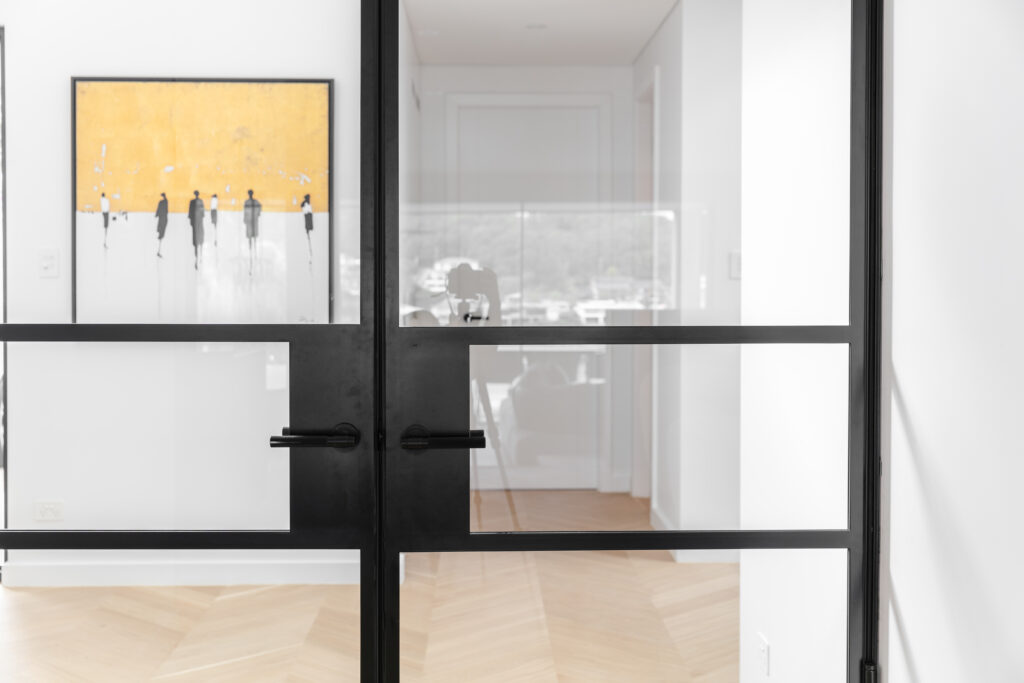 BLAS Narwee Lever Handles on Aluminium Doors | EMB | Electro Matt Black